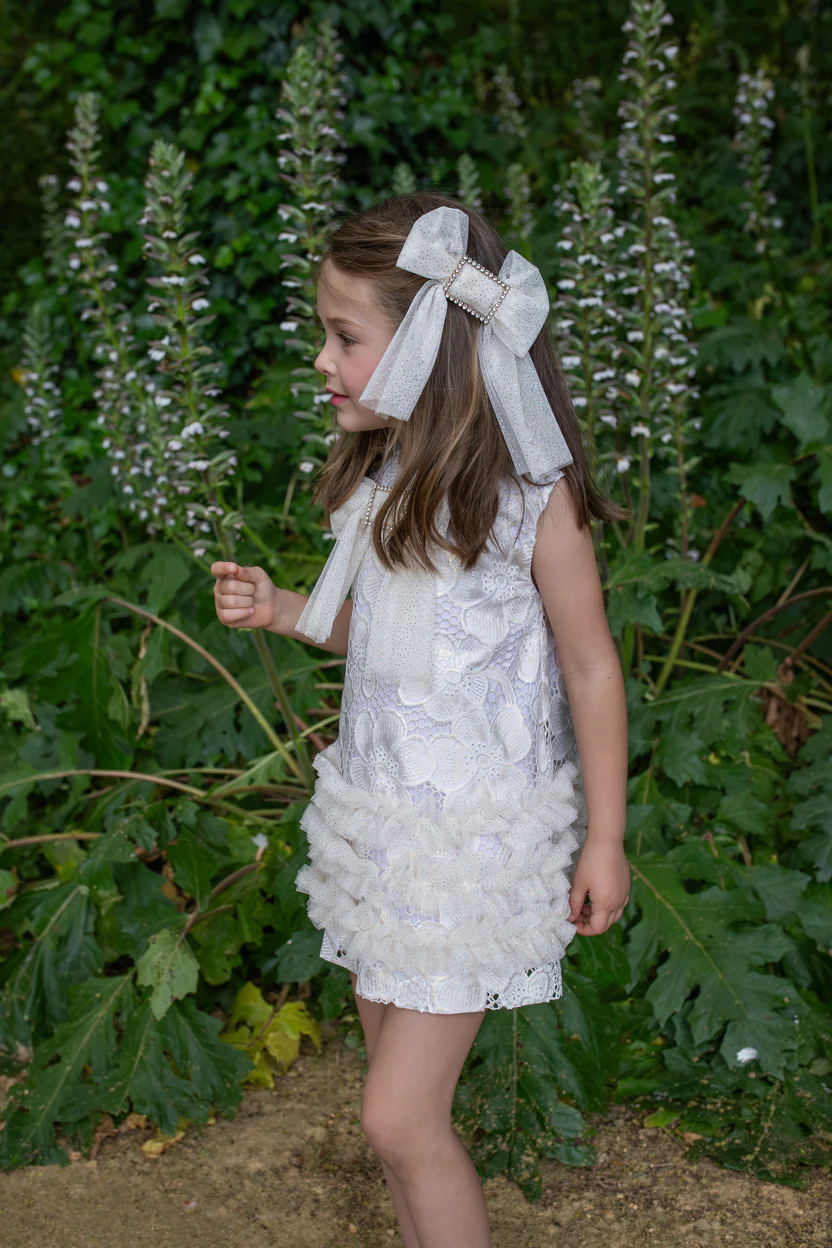 Let your little one shine in the Naxos Jazmin Gold & White Lace A‑Line Dress, a stunning piece of Spanish craftsmanship designed for elegance and charm. This enchanting dress features intricate gold and white embroidery, delicately layered over soft lace and finished with a tulle trim that moves gracefully with every twirl. The flattering A‑line silhouette offers comfort and sophistication, making it perfect for birthdays, weddings, and special celebrations. A timeless design that captures the magic of childhood while adding a touch of refined sparkle to any occasion.